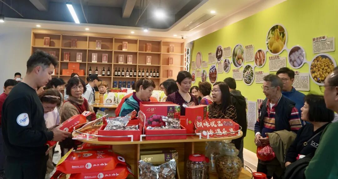随后,游客团一行走进“乐农优品”展销专区,展区集中展示了乐昌马蹄、炮弹香芋、腊味等优质本土农特产品与特色文创好物,以实物为媒、以文化为韵,搭建起“文旅引流、农产变现、消费赋能”的直通桥梁。