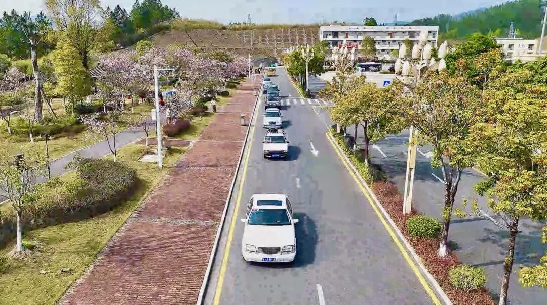 下午2时30分,乐昌东站热闹非凡,数十台质感十足的经典车整齐停放,宛如岁月使者静候启程。在现场观众的瞩目下,领导和嘉宾共同按下发令喇叭,清脆鸣响点燃了全场热情,车队次第启程,开启了复古与春日浪漫交织的巡游之旅。