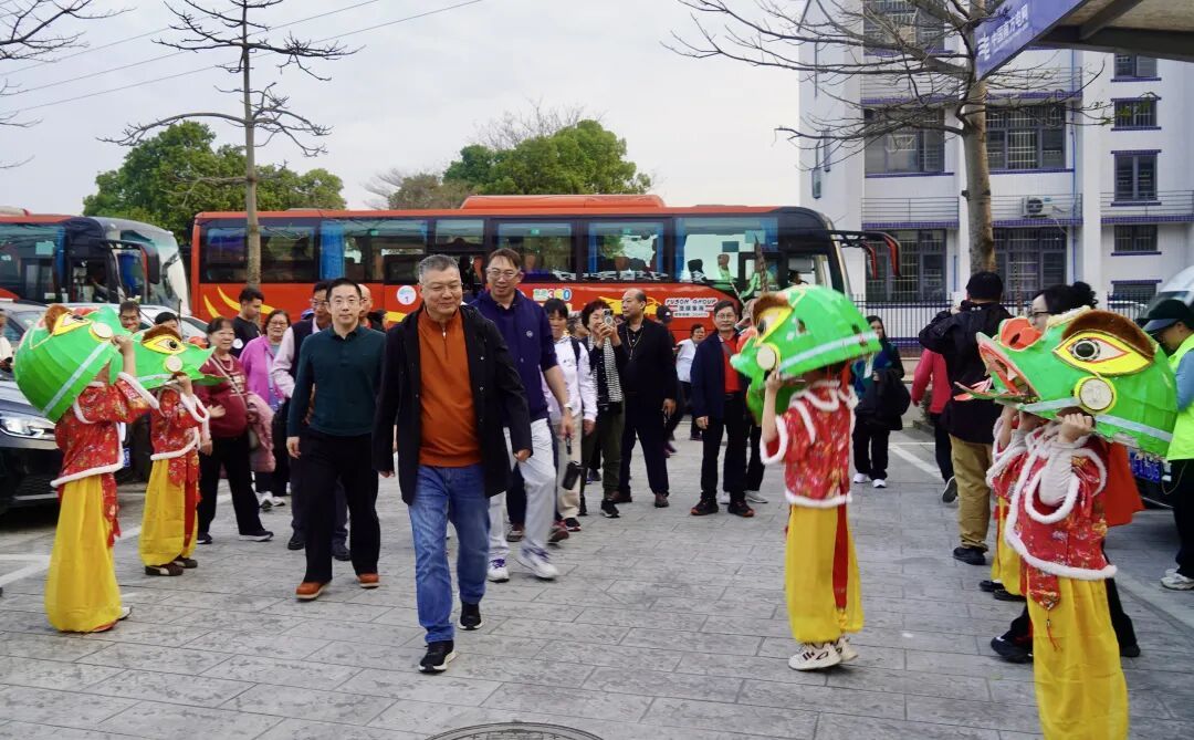 下午6时,澳门宾客刚抵达目的地,就被热烈的迎宾氛围包围:迎宾道上,乐昌青蛙狮表演队以传统喜庆的非遗表演传递乐昌人民的诚挚心意;身着盛装的姑娘们列队挥手,甜美的笑容如春风拂面;憨态可掬的乐昌“四宝”人偶吸引了澳门游客纷纷驻足合影,充满仪式感的接待让远道而来的客人倍感温暖。